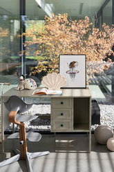 Rašomasis stalas su stalčiais ir šonine lentyna "VINTAGE", eucalyptus